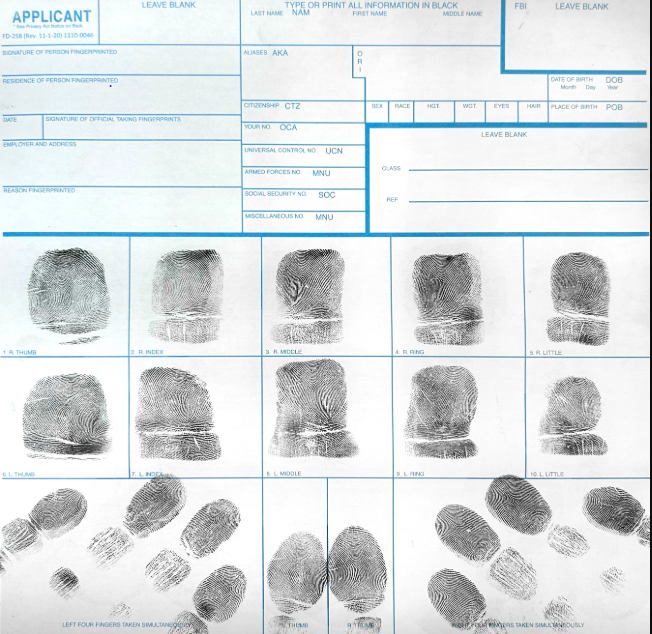 Mobile Ink Fingerprinting FD-258 cards